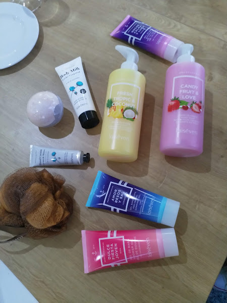 La marca fue muy generosa con nosotras y es que nos preparó un lote de3 geles de baño, 2 jabones para manos, crema de manos, esponja y bola de baño. Sus olores, sus colores y nombres tan peculiares te atraeran desde el primer dia