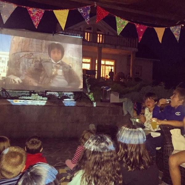 En la piscina teníamos dos hinchables de ouioui que hicieron que lo pasaran en grande y tanto grandes como pequeños disfrutamos todo el día en el agua. Ya por la noche, después de la cena y de montar las tiendas de campaña, pudimos ver "Los Goonies" (peli favorita de Baballa) en un cine de verano (ordenador, proyector y una tela blanca) en el que teníamos hasta carrito de palomitas ( de Balugue). Uno de los momentos más divertidos fue el momento de acostarse, con las conversaciones de los niños (y no tan niños) en las tiendas de campaña !! Volvimos a la adolescencia !!