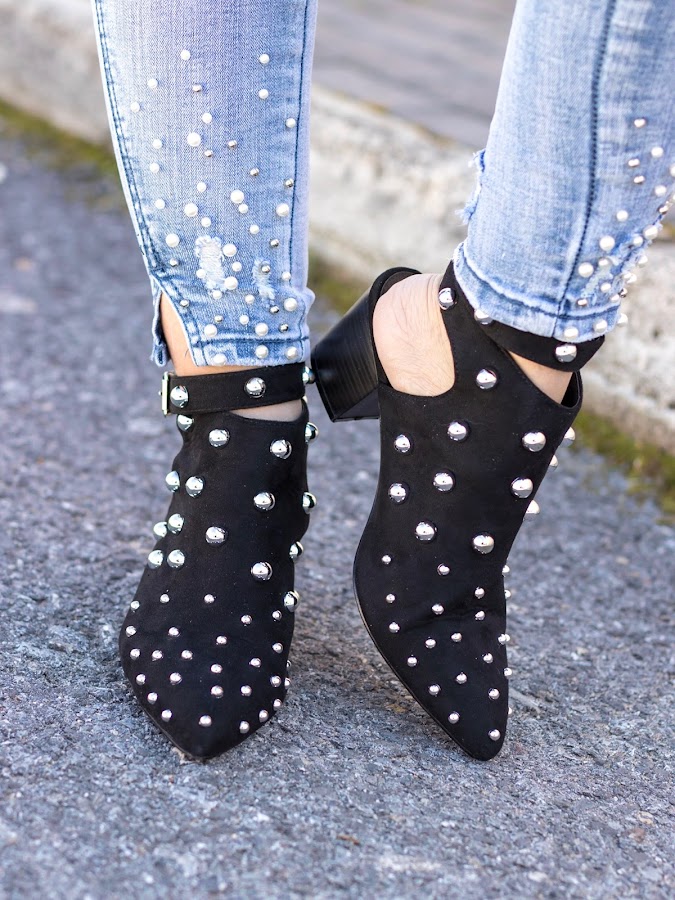 Yo creo que en realidad, los protas de hoy son mis zapatos, unos botines negros de ante, con tachuelas y pulsera en el tobillo.