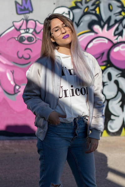 Some mom jeans and a bomber end up making a casual and comfortable look. But have you seen my sneakers? They are amazing! Its limited edition of VANS with many unicorns !! I got them in ZALANDO, it was a gift from kings of my boyfriend, who knows Im crazy! Unfortunately, they are no longer in stock, but below I leave the link of the new edition of Snoopy. I advise you to ask for a size less than usual.