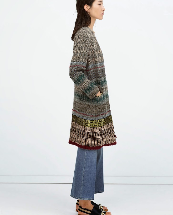 Lo dicho, si vas de compras y te apetece picar en nueva temporada, no olvides que aún quedan mínimo (y dependiente del punto de donde vivas) dos o tres meses de frío, así que trata de evitar las telas demasiado finas, las mangas cortas o los tirantes. Este abrigo de Zara es precioso.