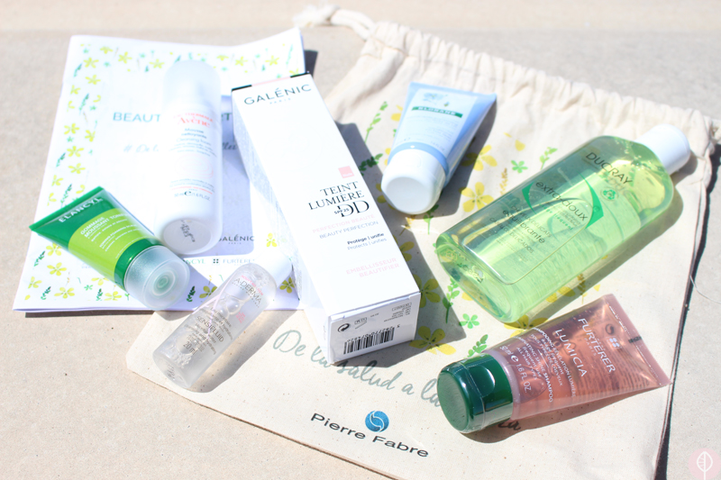 En la bolsa encontramos un producto de cada marca de Pierre Fabre: A-Derma, Elancyl, Avene, Galenic, Klorane, Ducray y Rene Furterer, son estos: