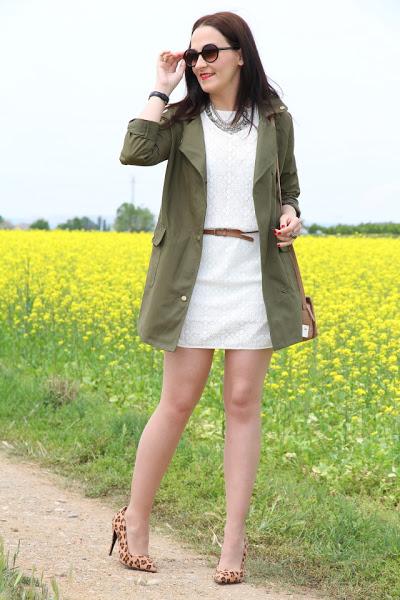Hace unos días en este post os hable de las trench y de las ganas que tenía por hacerme con una nueva. Pues bien, después de mucho buscar por fin encontré la mía en Zaful. Tenía claro que la quería con un corte suelto y en color verde y por eso me costó dar con ella hasta que vi esta preciosidad. Me llegó a casa enseguida y al natural aun me gustó más, tanto es que no pude esperar y el sábado la estrené para salir a dar una vuelta por la mañana con mi marido. La combiné con un vestido de crochet blanco y le añadi un collar boho, bolso cámel y stilettos con estampado de leopardo.