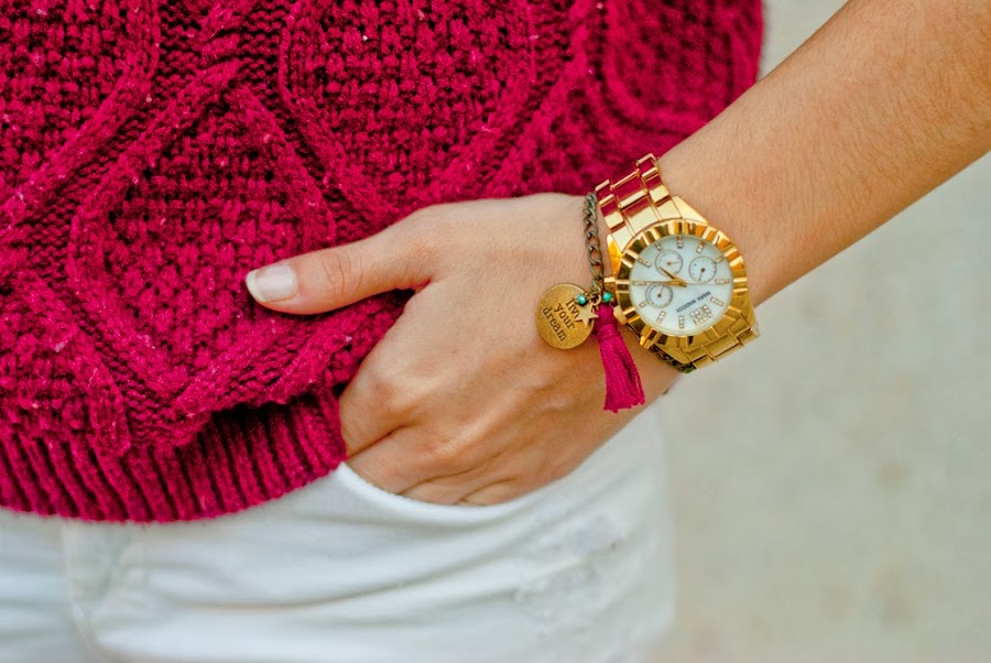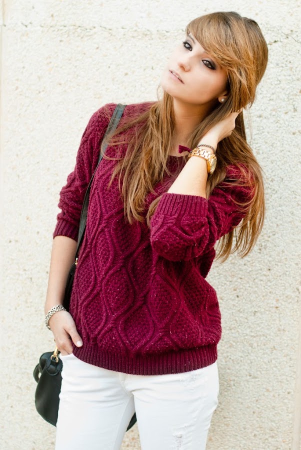 After this paragraph a lot of changes, I show you my first look with white pants!! Since some weeks ago I see in much blogs looks with white pants and I really wanted wear them! I combined with a burgundy sweater and nude shoes! I hope you like!