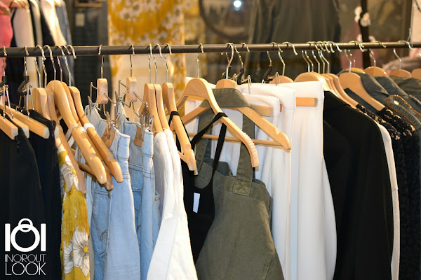 Como looks estrella en el aparador, había uno elegante con blusa boho-chic y falda larga blanca junto a un look más casual de vestido largo estampado de flores y chaqueta Sahariana en color verde militar.