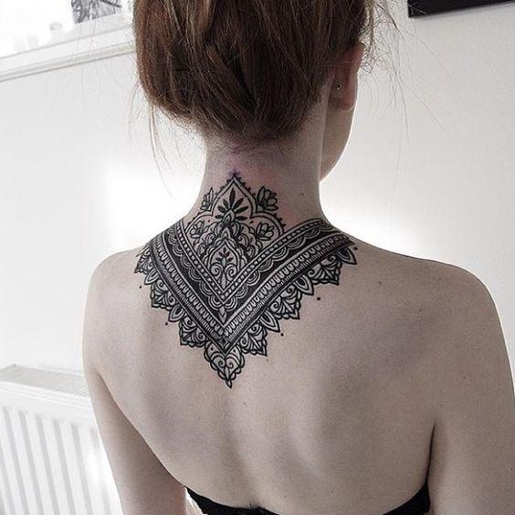 Los tatuajes para la nuca no precisamente tienen que ser pequeños, tambien pueden crearse grandes y hermosos tatuajes como lo vemos en la imagen anterior.