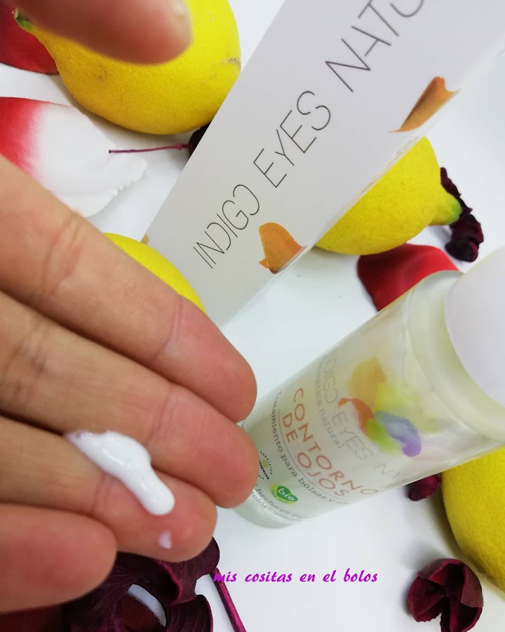 Como os he dicho está indicado para bolsas y ojeras, sin embargo no actúa como antienvejecimiento propiamente dicho, ni patas de gallo… Yo tengo costumbre de utilizar el contorno de ojos también en el contorno de los labios, y naturalmente en este caso no lo he hecho.