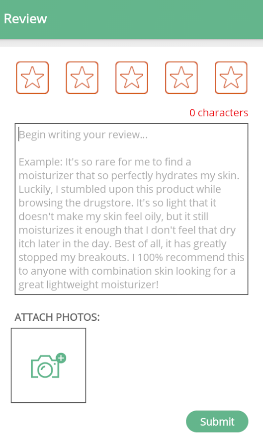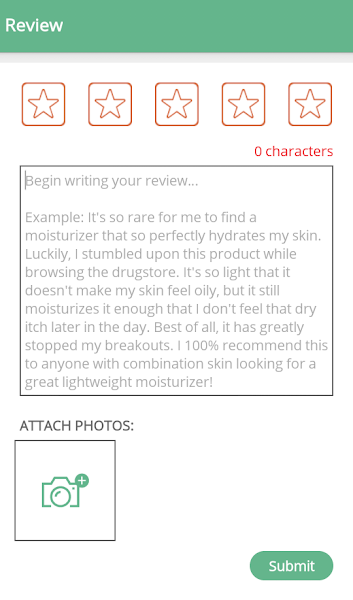 3- Escribes tu reseña (En Ingles) seleccionas la cantidad de estrellas que le quieres dar al producto y luego das click en "Submit", seleccionas la cuenta con la que quieres publicar tu reseña (Facebook o Twitter) y das Click en "Share" y listo.