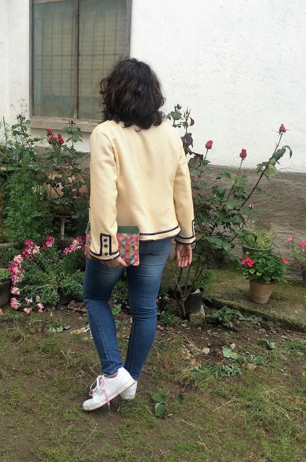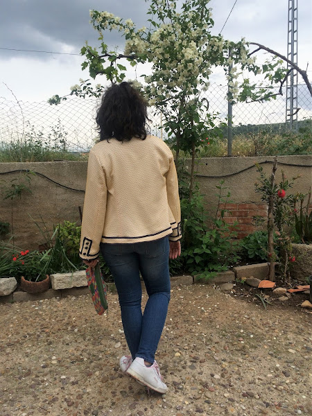 Ya pudisteis ver como confeccione mi traje de tipo chanel y pudisteis ver fotos con este traje puesto. Hoy quiero mostraros solamente la chaqueta, quiero mostraros un look más informal con la chaqueta, que con estos días que esta haciendo la estoy utilizando bastante, aunque al ser una tela bastante ligera, la verdad es que incluso para las noches frescas del verano vendrá genial.