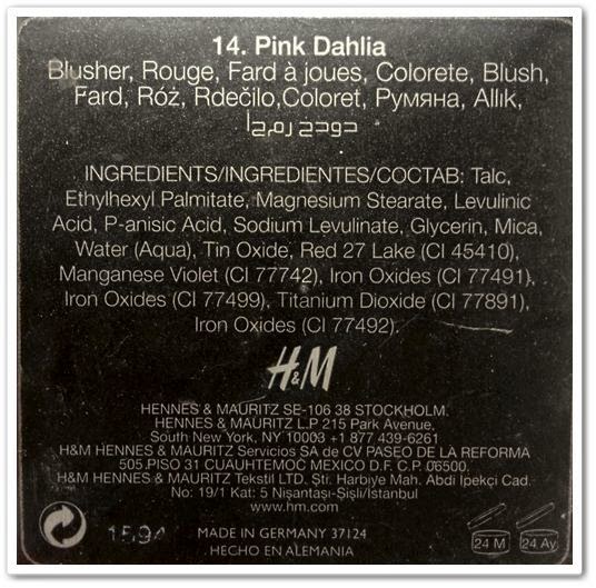 Componentes de blush de H&M. Todos son buenos o muy buenos.