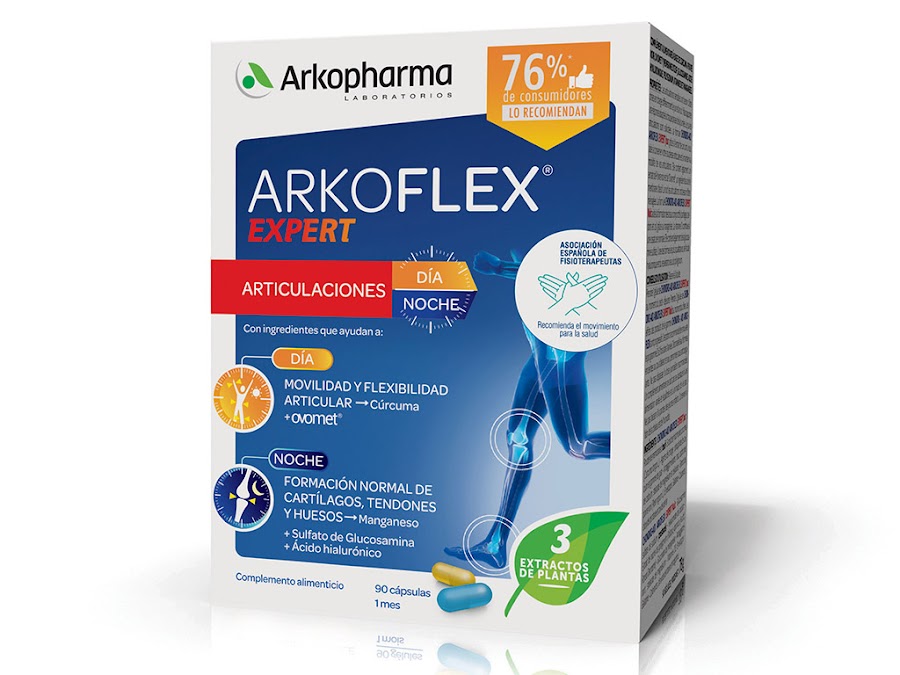 La novedad de la gama Arkoflex es una innovación basada en la cronobiología, con ingredientes que ayudan a mejorar la movilidad y flexibilidad articular al tiempo que evitan el desgaste de las articulaciones. Se trata de Arkoflex día y noche, con distinta fórmula para el día y la noche, avalada por la Asociación Española de Fisioterapeutas.