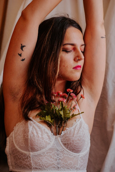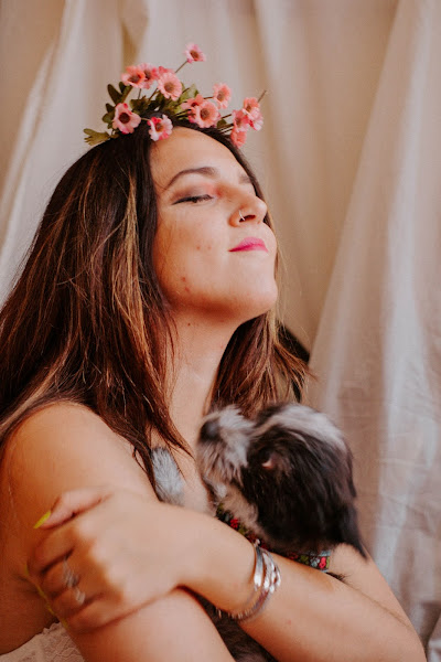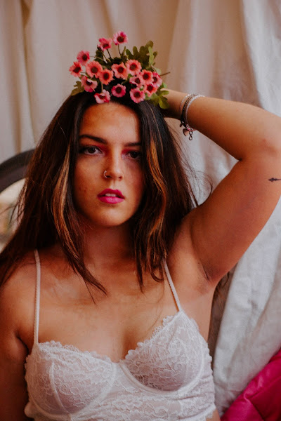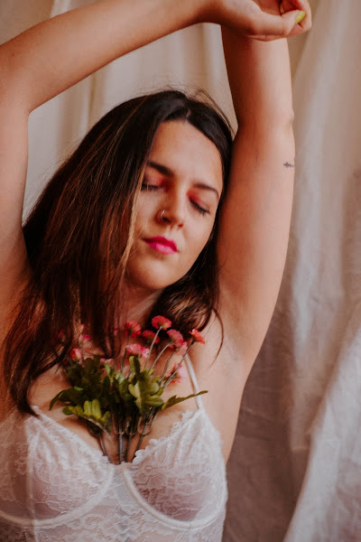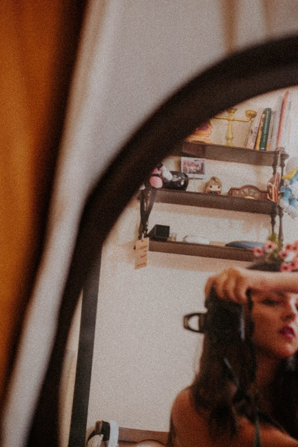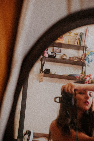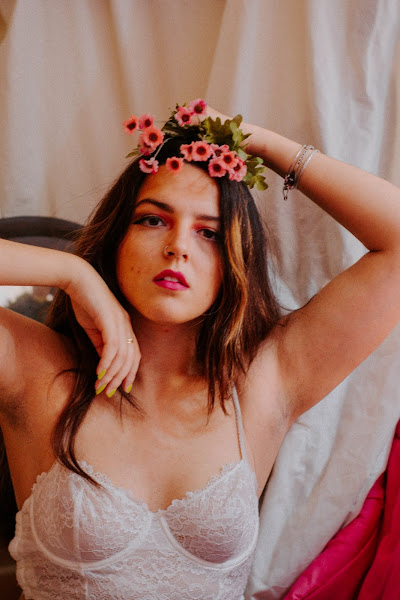 A veces me creo fotógrafa profesional con una simple manta, un espejo y un ramo de flores de plástico en la cabeza.