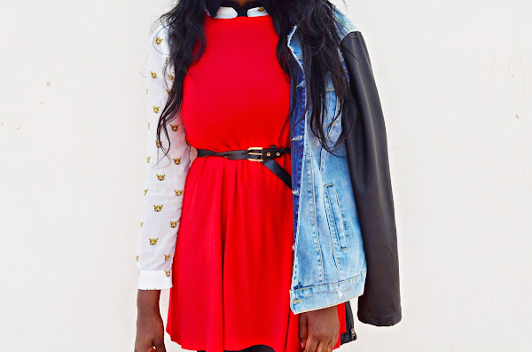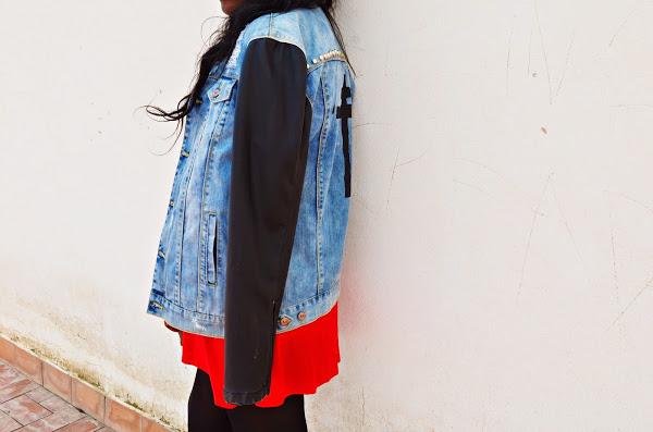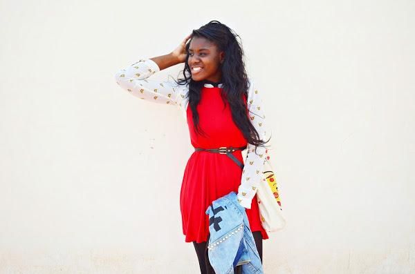 Chaqueta Customizada : INSIDE / Vestido Rojo : Blanco (old) / Camisa tigres : Stradivarius (old) / Bolsa de Tela : Primark (old)