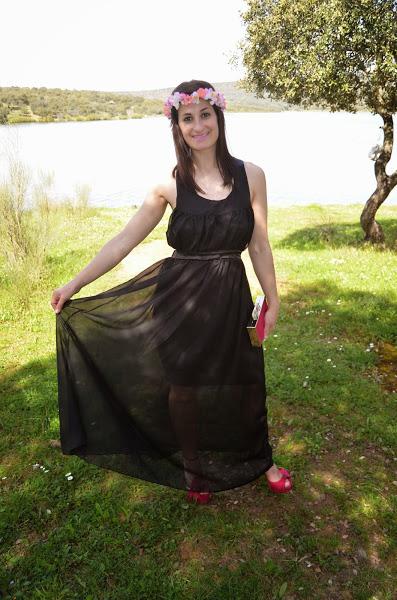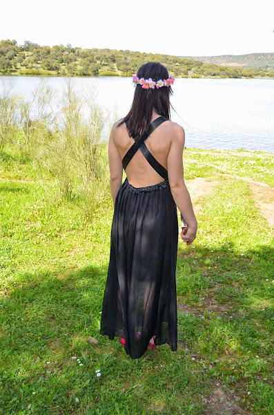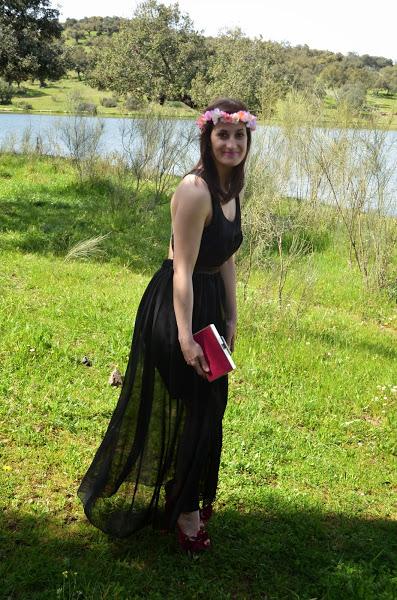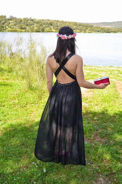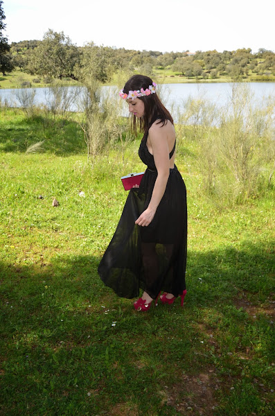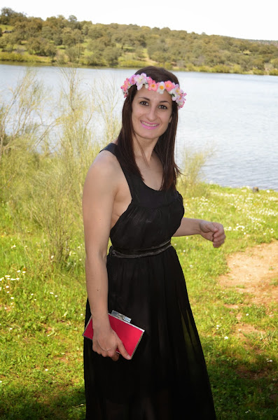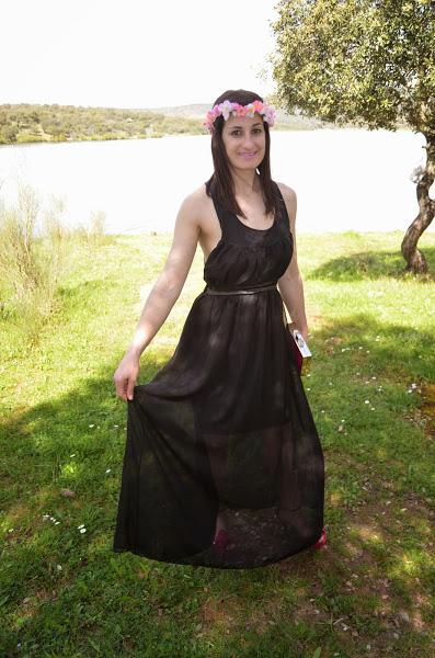 Para ello utilicé mis sandalias y clutch de MaryPaz que tanto os gustó en uno de mis look pasados y como único complemento una corona de flores creada por mí.