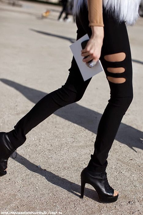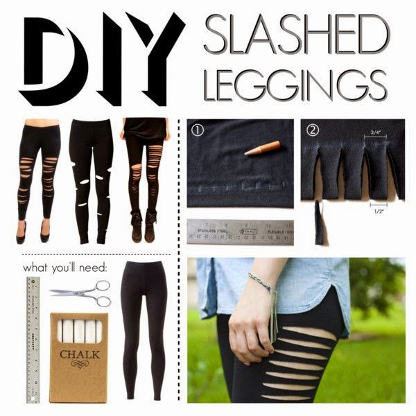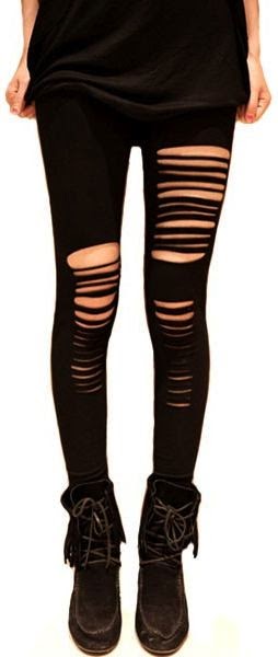 Los leggins son una pieza infaltable en tu closet, son útiles tanto para un look casual como para hacer ejercicio, la nueva tendencia son los leggins slashed, que quiere decir apuñalados o rotos... a mi me encanta el estilo punk que transmite y depende del outfit puede ser un punk romántico o un punk súper dark, ya dependerá de tu estilo :) a mi me fascinan y además puedes hacerlos tu misma :D Yupiii...