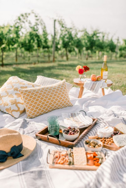 Pero cuando yo hablo de hacer un picnic no me refiero a coger una mochila, comprar dos empanadas y unas latas de refresco, extender una toalla en el césped y ya. No. Hablo de un buen picnic, un señor picnic con todas las letras. Con su cestita, su mantel, su cubertería, su tabla de embutidos, su fruta partida, su vinito en copas de usar y tirar... Y ahora que me hallo inmersa en la organización de este evento necesito más que nunca una buena dosis de inspiración.