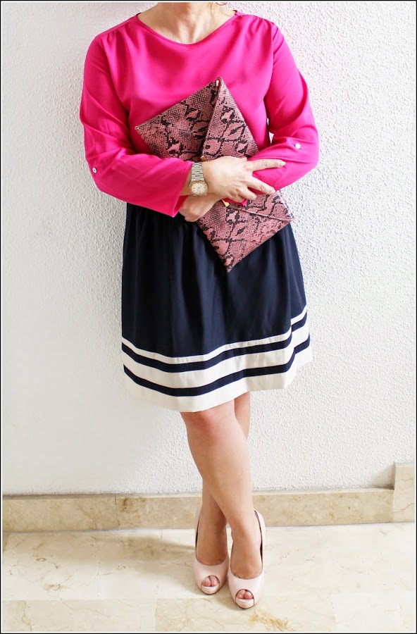 Generalmente lo vemos combinado con blanco, rojo o azul, pero hoy os propongo combinarlo con un tono rosa fucsia, para darle más intensidad al look.