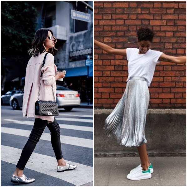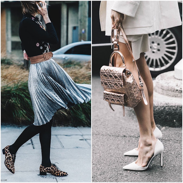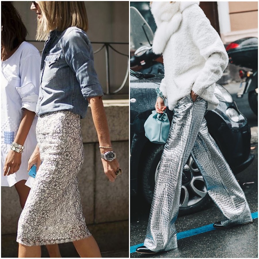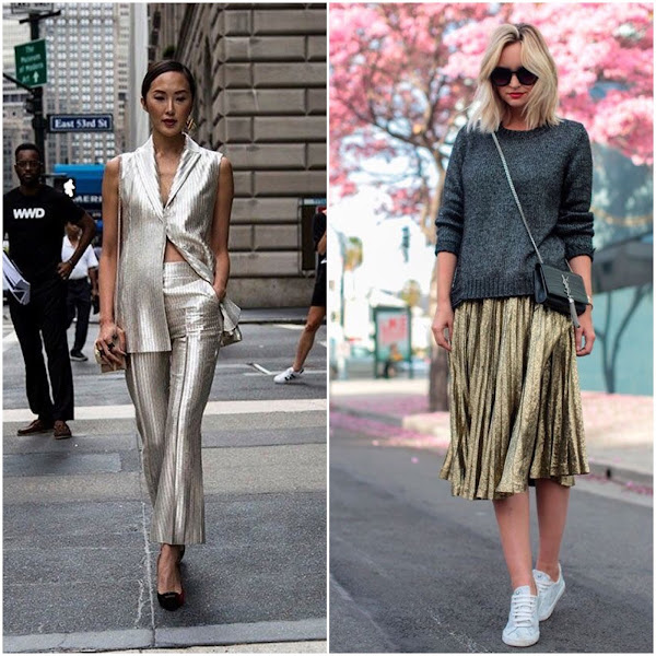 Today I bring you a new inspiration post with one of the trends of the season: metallics. In the fashion weeks of Paris, New York and London, we could see this trend in skirts, total outfits and accessories. And we start to see it in the shops and streets, because its one of the trends of the season that I shouldnt be missing in your closet. I love this trend in pleated skirts or accessories like shoes or bags.