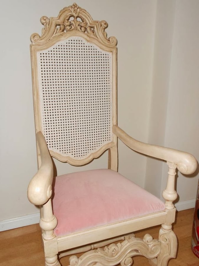 vogue.esMas tarde llegó la aventura de restaurar mi trono. No tuve dudas a la hora de escoger para el asiento un terciopelo rosa palo.Y entonces la relación se afianzaba.