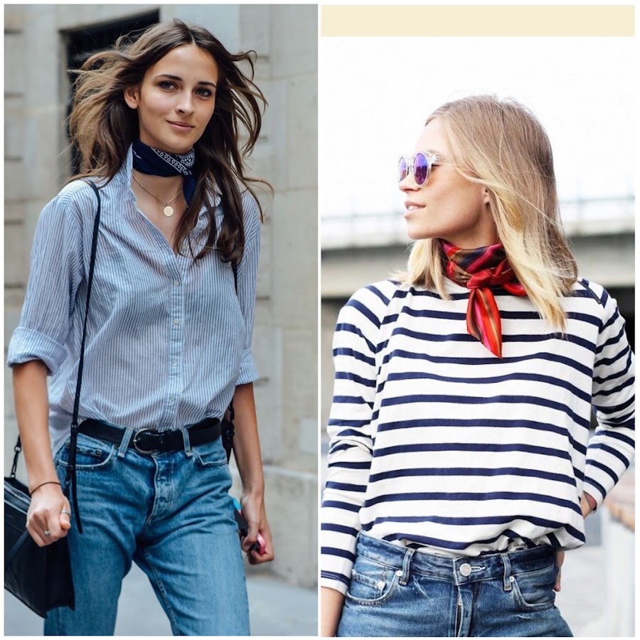 Good night babies! Today I bring you an inspiration post with one of the trends of the season: the bandanas, a 90s kerchief that has returned this season. You can wear in different ways like a bracelet, in the neck or in the head. I love bandana with navy tees. I show you a selection of the best outfits of street style with this trend.