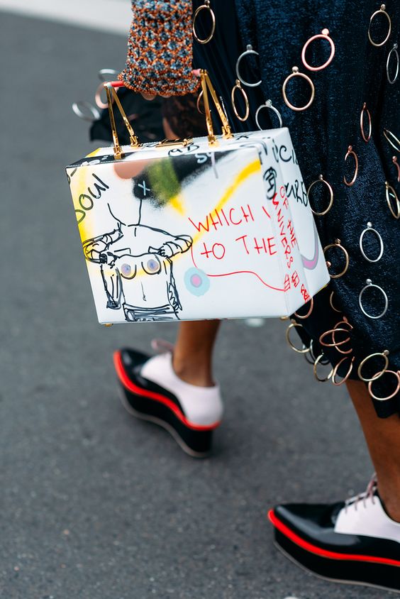 El post de hoy viene cargado de creatividad e imaginación teniendp como protagonista los bolsos. En los desfiles o en los street style del día a día y en las semanas de la moda, hemos visto multitud de ellos que nos llaman la atención por su diferencia, su detalle, material. A continuación, he recopilado algunos de ellos, para que nos enamoremos un poco más de ellos :P ¿Cuál es vuestro favorito/s? Espero que os gusten.