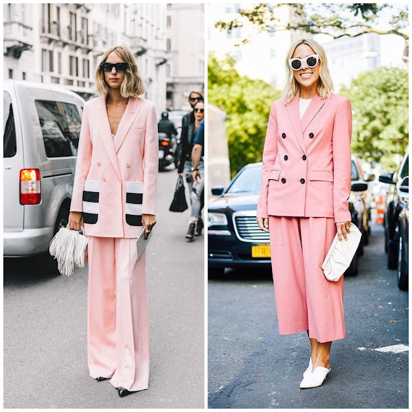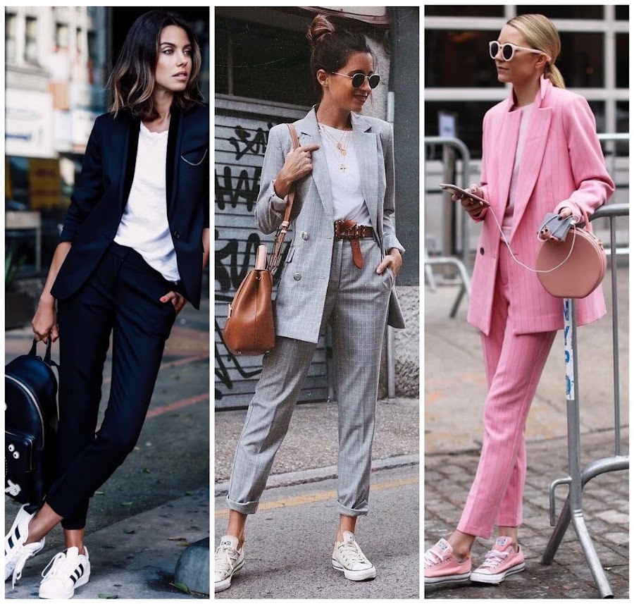 Hoy os traigo un post de inspiración con una de las tendencias de esta temporada: los trajes. Esta prenda asociada al mundo de la oficina, nos muestra su lado fashionista esta temporada. Me encanta combinada con zapatillas de deporte y camisetas, dándole un toque casual a esta prenda tan formal. Se llevan en tanto en tonos lisos como negro, rosa o rojo o estampados con rayas diplomáticas o cuadros.