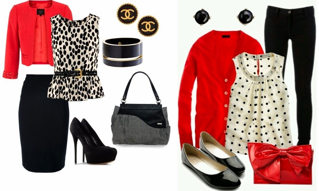 La combinación de colores es más rígida, perfecta para ambientes laborales, pero esta seriedad queda atenuada al combinarse con el estampado a topos o manchas . La sustitución de unas discretas bailarinas por una afilado tacón de aguja, es la solución perfecta para impactar. Por otra parte, un bolso llamativo reavivará el look de oficina y te catapultará directa a la fiesta.