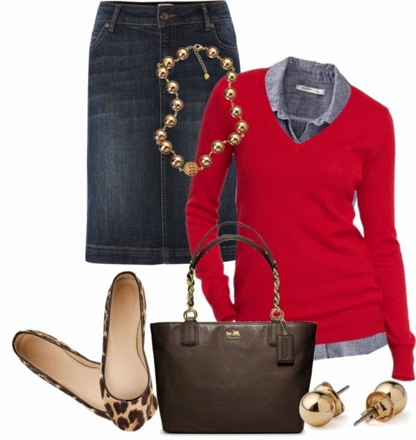Los complementos son, en este caso, elementos clave: Un buen bolso, grande y práctico para el día a día, y una blusa roja que anima estos sencillos vaqueros., zapatos de tacón o bajos, tu elijes, aunque las bailarinas planas te permitirán llevar este look durante largas jornadas, sin dejar a un lado la coquetería.