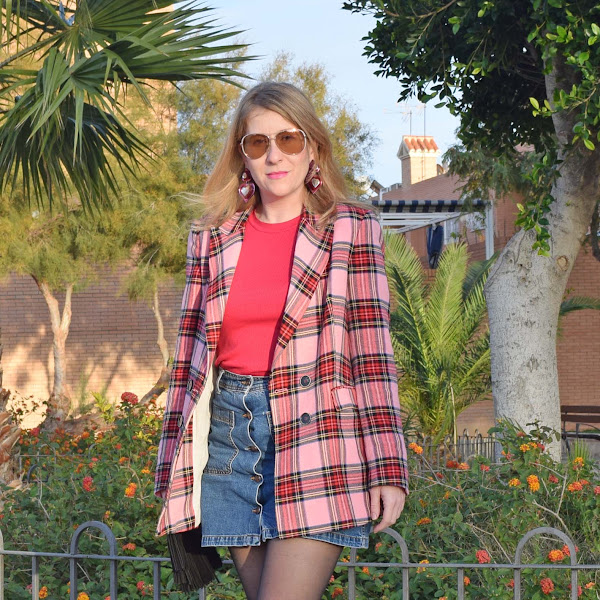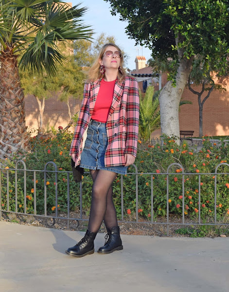 Me apetecía añadir las botas militares para romper con el estilo más romántico que aporta la blazer en los mismos tonos rosas del jersey, y este fue el resultado.