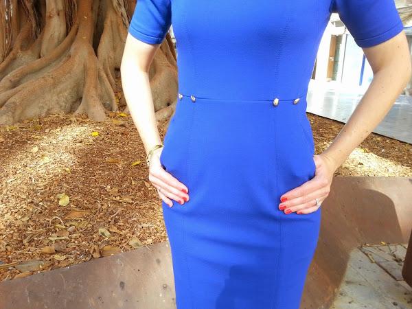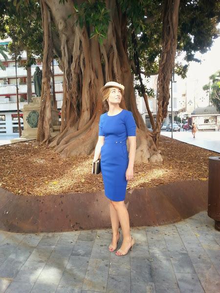 Rastreé varias páginas de tiendas buscando algo de corte sencillo y preferiblemente con falda lápiz y con tono lady... Y de repente se me encendió la bombilla y me acordé de este vestido de Adolfo Dominguez que mi madre se había comprado y solo había usado en una ocasión.
