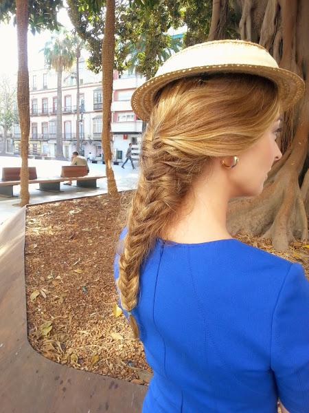 No quería llevar el pelo suelto para no quitar protagonismo a mi gorrito, pero tampoco me apetecía un recogido porque pensaba que el look ya era bastante serio y necesitaba algo más juvenil.