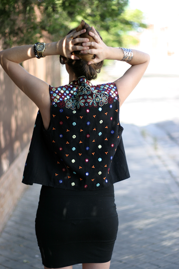 I"m wearing: Vest/Chaleco - Lefties(SS14), Skirt/Falda - Pull&Bear(Old), Heels/Tacones - Zara(SS14)HERE/AQUI, Crop top - Front row shop(SS14)HERE/AQUI, Bag/Bolso - Primark(FW13-14), Bracelet/Pulsera - Persunmall(SS14)HERE/AQUI.