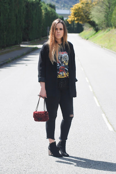 Hacía mil años que no usaba esta camiseta de Iron Maiden y el otro día me entraron ganas de volver a ponérmela. Así que para no salirme mucho de mi línea decidí combinarla prendas total black añadiendo un toque de color con el bolso. Además aproveché para estrenar mi nueva funda de móvil personalizada que me enviaron desde Regalos Personales y que no puede gustarme mas.