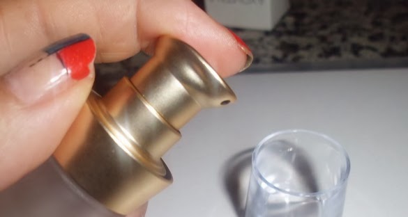 Viene en un botecito muy lujoso y bonito, con un sistema de pompa. Prefiero los cosméticos que traen este sistema porque se desperdicia menos producto y tiene una mejor conservación ya que ni lo toco yo, ni el aire. Me da mucha confianza.
