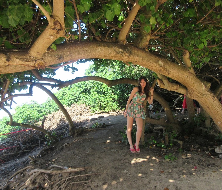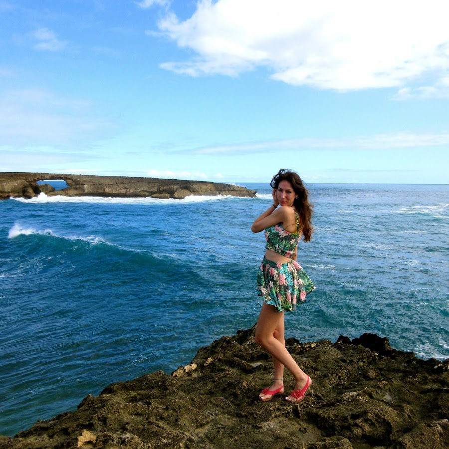 Este es el outfit que llevé el día que hicimos el Tour por la isla de Oahu en el mini bus.Teniendo en cuenta que visitaríamos muchos lugares de interés y que iríamos a la playa a hacer esnórkel con tortugas y tomar el Sol, elegí un conjunto de mini falda y crop top, mis famosas sandalias waterproof a prueba de todo y muchos complementos para personalizar mi look.