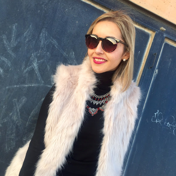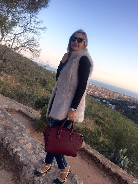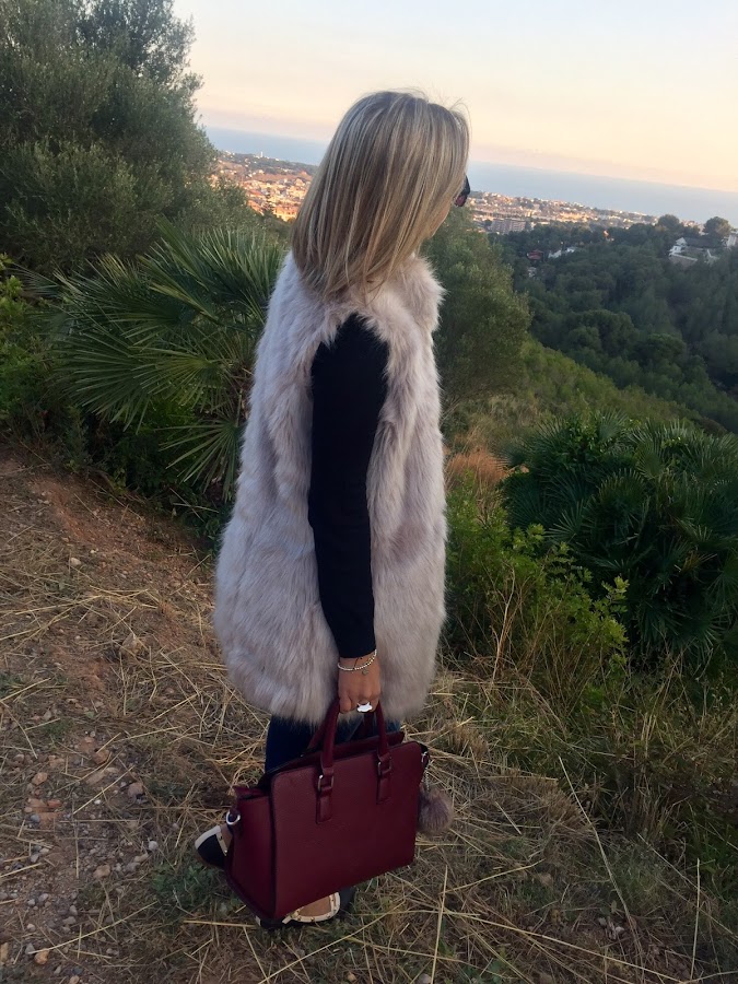 Parece que el frío ha llegado y sin dejarnos tiempo para acostumbrarnos a la caída de las temperaturas. Así que toca abrigarse para salir a la calle y creo que las prendas de pelo son las mejores para resguardarse del frío. En el look que os muestro hoy, combiné mi chaleco de pelo con un jersey de cuello alto negro y mis ripped jeans. Los accesorios del look son mis nuevas manoletinas estilo las de Valentino, mi bolso granate y un collar boho en tonos granates. Un look abrigado y cómodo para enfrentarse al frío de la ciudad.