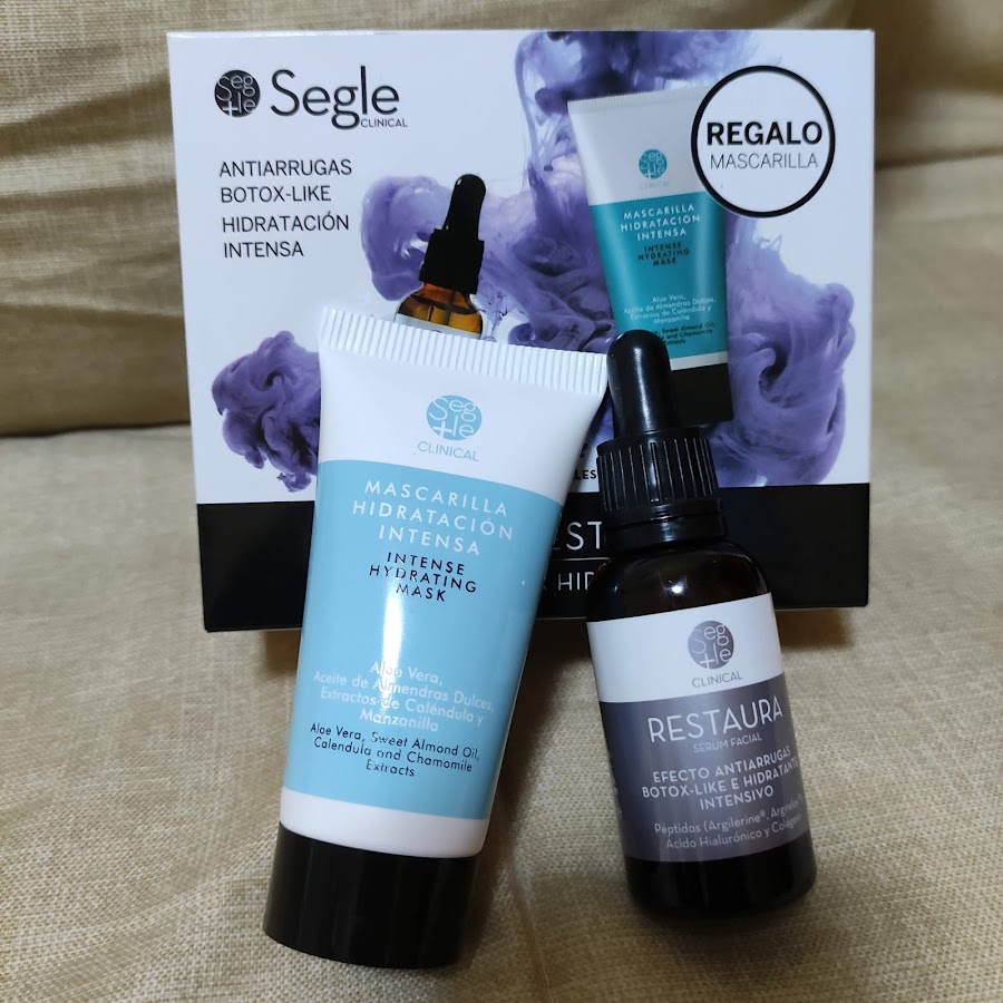En mi caso, me obsequió con un pack del serum restaura y una mascarilla de hidratación intensiva.El serum restaura está formulado con péptidos con efectos botox-like que alisa y reduce las arrugas y líneas de expresión. Promete una piel más hidratada, lisa y elástica. Contiene ácido hialurónico y aloe vera; así como colágeno marino e Isoflavonas. Qué ganitas le tengo! No os parece un productazo?