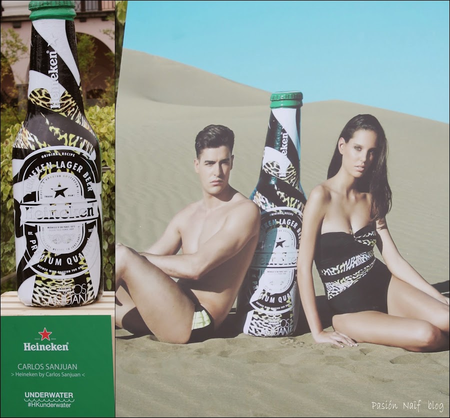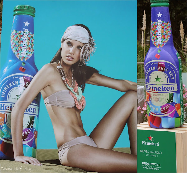 ?Heineken Pure Life?. Según la diseñadora, su propuesta nace como con un marcado carácter sporty y de investigación en sus mezclas imposibles de tejidos. Directamente inspirada en la corsetería y en la ropa deportiva, su botella PURE LIFE se muestra cómoda y sexy, tan masculina como femenina y extremadamente sofisticada y actual. Es como una de esas piezas de fondo de armario que puedes sacar para las noches de verano y con la que puedes nadar. Evoca las noches de verano, los días de piscina, los breaks en las terrazas, el final del día que queremos compartir, evoca Pura Vida...