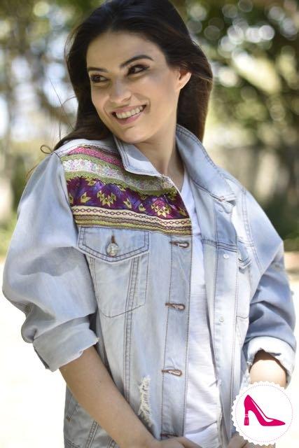 La mía es de estilo boyfriend (como si se la quitaras a tu novio), es grande y se usa con las mangas dobladas. Esto te hace sentir delgada y atrevida, debes probártela para comprobarlo! Además, su color de mezclilla clara con aplicaciones de cintas en tonos fucsia, morado, rosas gritan mi nombre. Me ha tomado desprevenida lo mucho que me iba a gustar algo tan “distinto” a mi estilo, jaja!