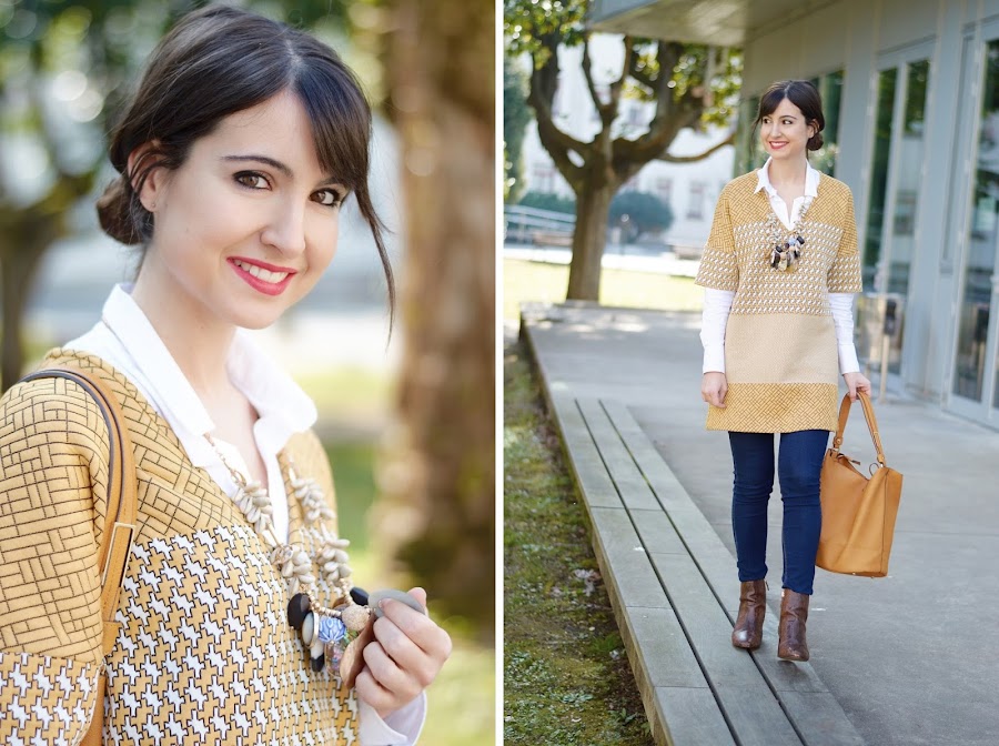 Vestido y collar: Zara / Botas: Stradivarius / Jeans: Bershka / Abrigo: Asos / Bolso: Parfois