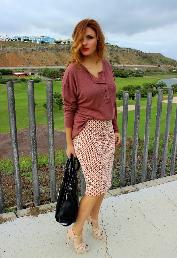 La falda de tubo super tendencia con partes de arriba oversice pueden ser jerséis, camisa básicas, vaqueras,etc. En esta ocasión la combiné con una camiseta básica y el resultado me encantó, parte inferior formal y parte superior informal, el mix perfecto.