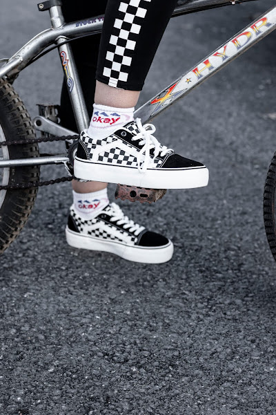 Aunque aquí las protas del look son mis zapatillas! Me flipan, en serio!! Fue verlas y tuve un flechazo!! Son de ANDY Z, con cuadritos en blanco y negro como un tablero de ajedrez y la puntera negra. Son súper cómodas!!