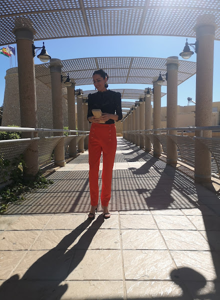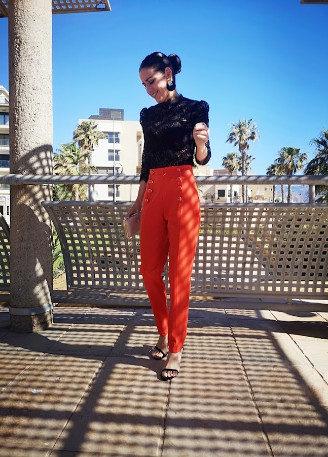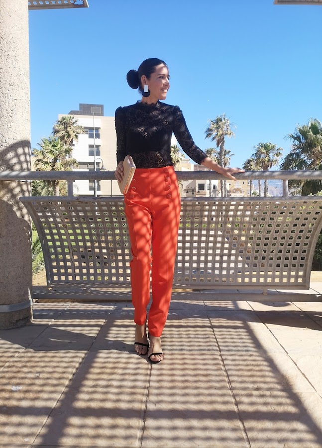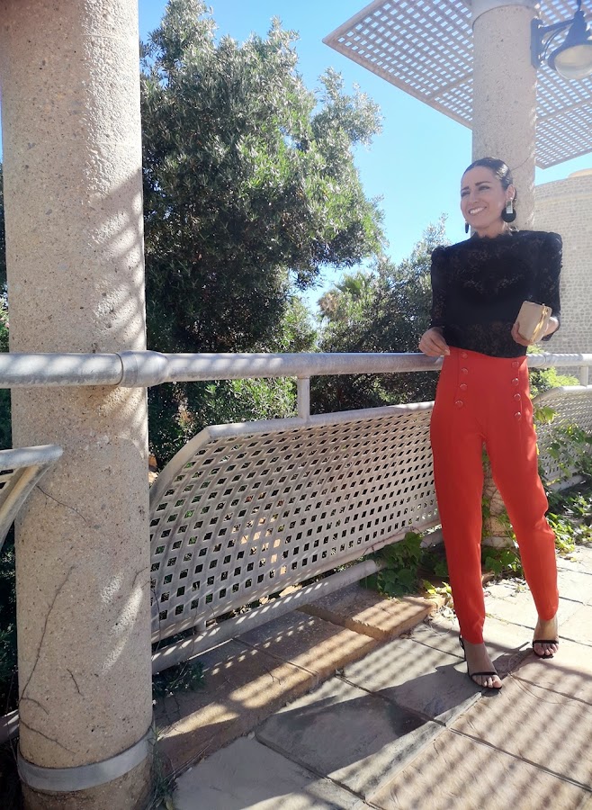 Hoy en mi nueva propuesta para invitada llevo una preciosa blusa de JAYEH que he combinado con un pantalón de tiro alto en el color bautizado por Pantone como Russet Orange.
