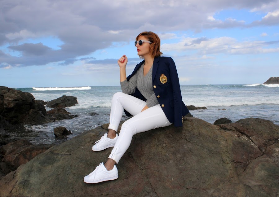 ¿Qué tal lovers? hoy repito con un look muy navy,es inevotables, me encanta esta tendencia sin tener que lleva camisas a rayas. Hay prendas que están inevitablemente asociadas al verano, como puede ser: vestidos vaporosos, blusas ligeras con escote off the shoulders y los temidos jeans blancos.