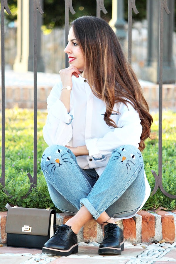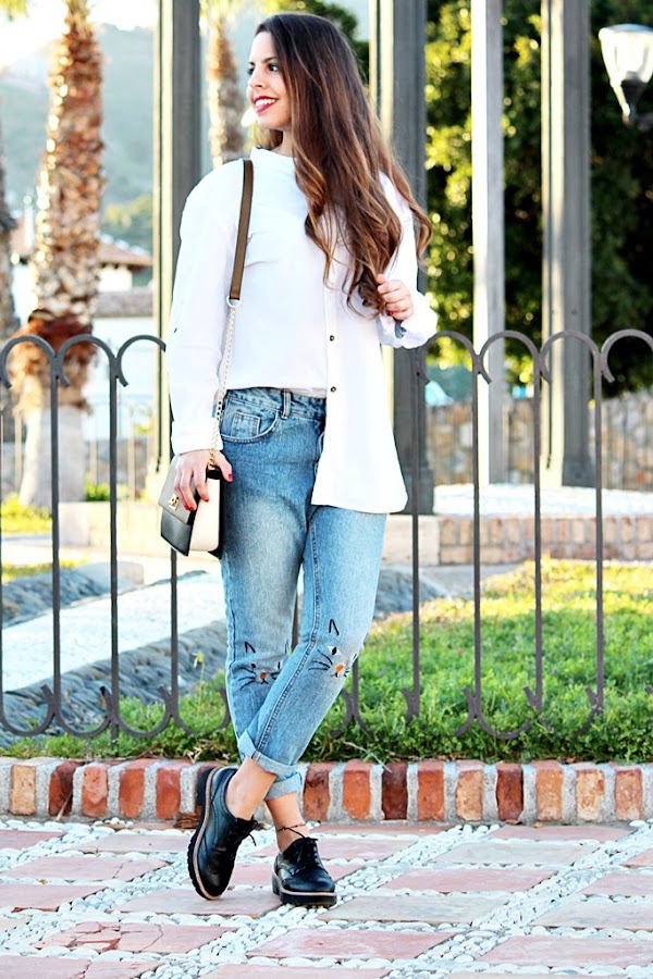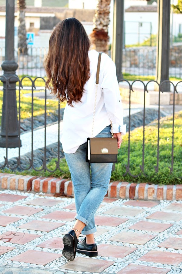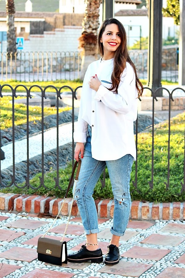 Hola cositas bonitas! Por aquí estoy un jueves más ☺ A pesar de estar en primavera el tiempo es bastante raro... Un día hace sol, otro nublado... no sabe una que ponerse ya. En esta ocasión os enseño un outfit básico pero a la vez chic. Usé unos jeans rotos con una camisa blanca de mi chico, bastante grande, sí, pero me encanta ponerme sus camisas, a vosotras también os pasa? La combiné con una ch ...
