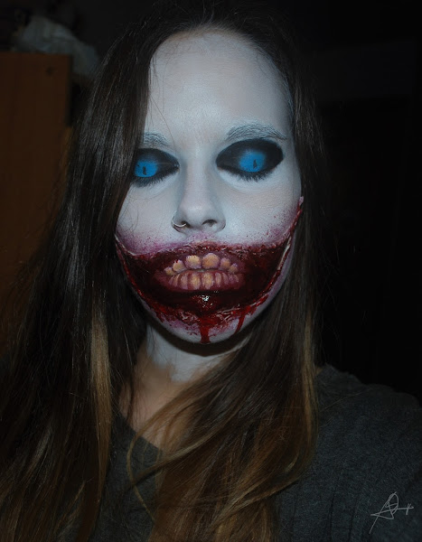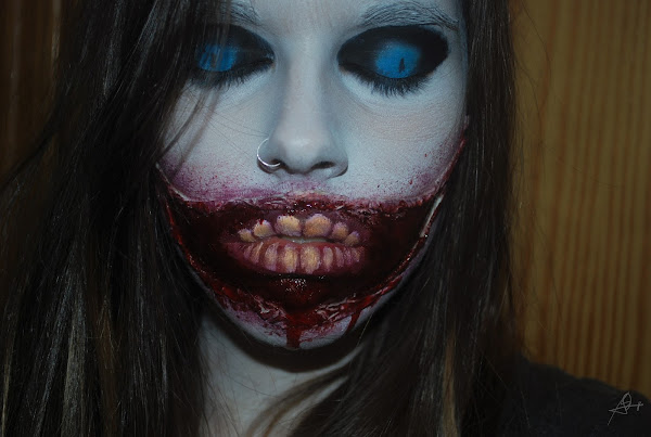 Se trata del de Jeff "The Killer". No me preguntéis nada acerca de él porque lo único que se es que es el protagonista de una película de terror. Pero había visto tantos maquillajes de él que tenía muchas ganas de hacerlo yo también.