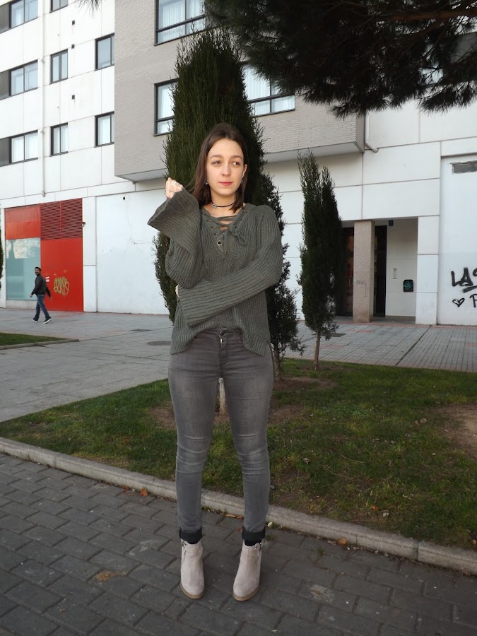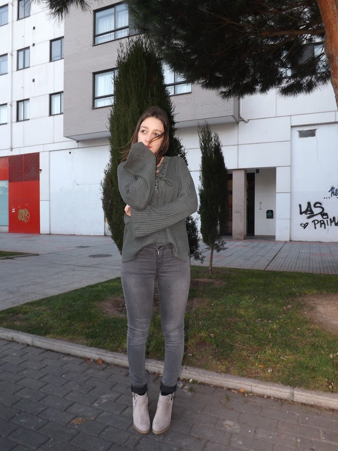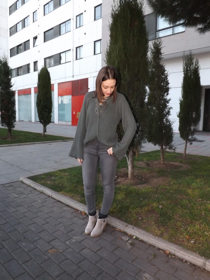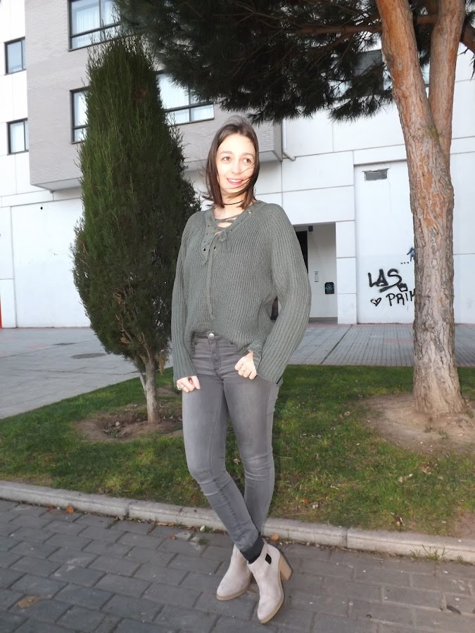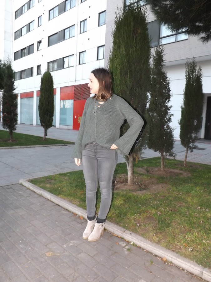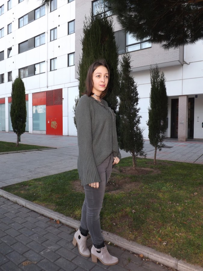 Some weeks ago I recived this sweater from Zaful I didn´t show you yet. His cuality is very, very good and it´s very warm. When I saw it in the shop it looks more green than it really is. According to the light that makes it look green or grey but I like it the same :) I combined it with grey jeans and beige ankle boots.