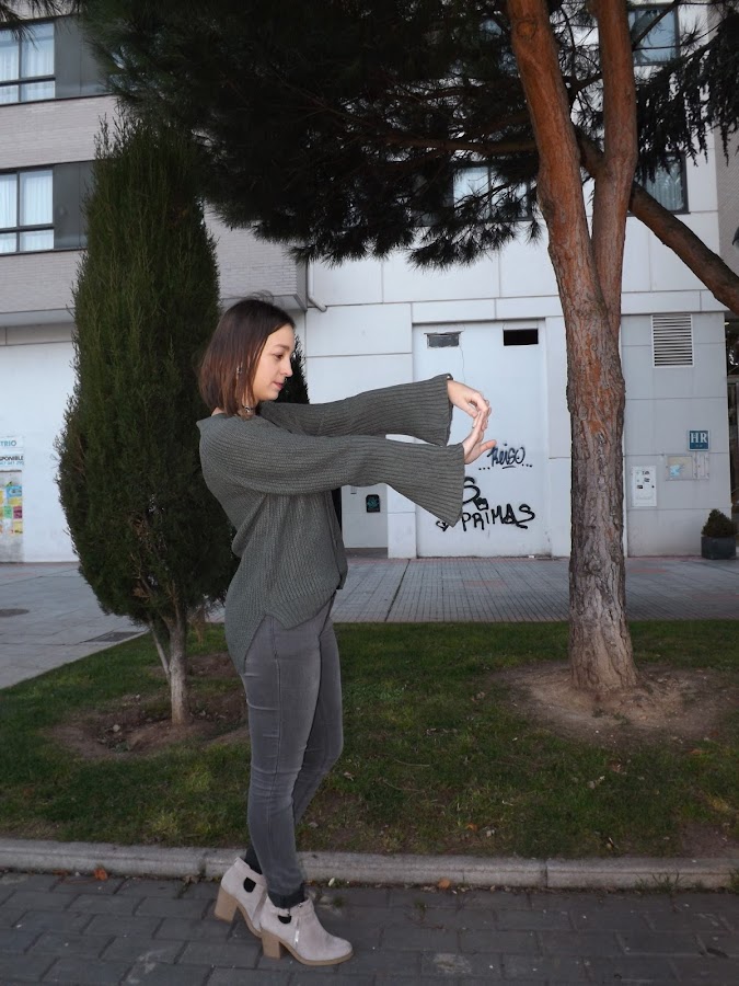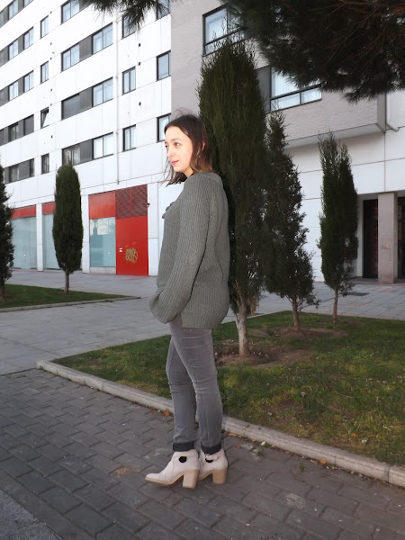 Hace tiempo que me llegó este jersey tan en tendencia de Zaful y todavía no os había enseñado. La calidad es muy muy buena, es gordito y al ser talla única sienta muy bien a muchos tipos de cuerpo. Cuando lo ví en la web parecía más verde de lo que es verdad, según la luz que le de parece más gris o más verde, pero bueno me gusta igual :) Lo combiné con jeans grises y botines beige.