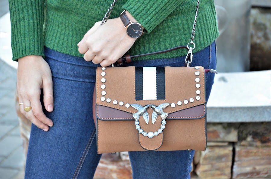 Por otro lado está el bolso con pájaros y piedritas en tonos predominantemente marrones. Es de Dresslily, fue amor a primera vista. Y aunque la calidad no es muy allá me ha gustado bastante.