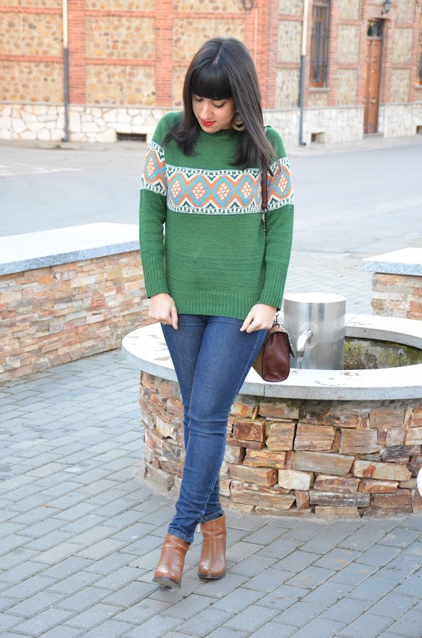 Hoy traigo un par de cosas que recibí hace poco y que me han gustado especialmente. En primer lugar este jersey invernal verde de Zaful con una cenefa en tonos azules, blancos y naranjas.